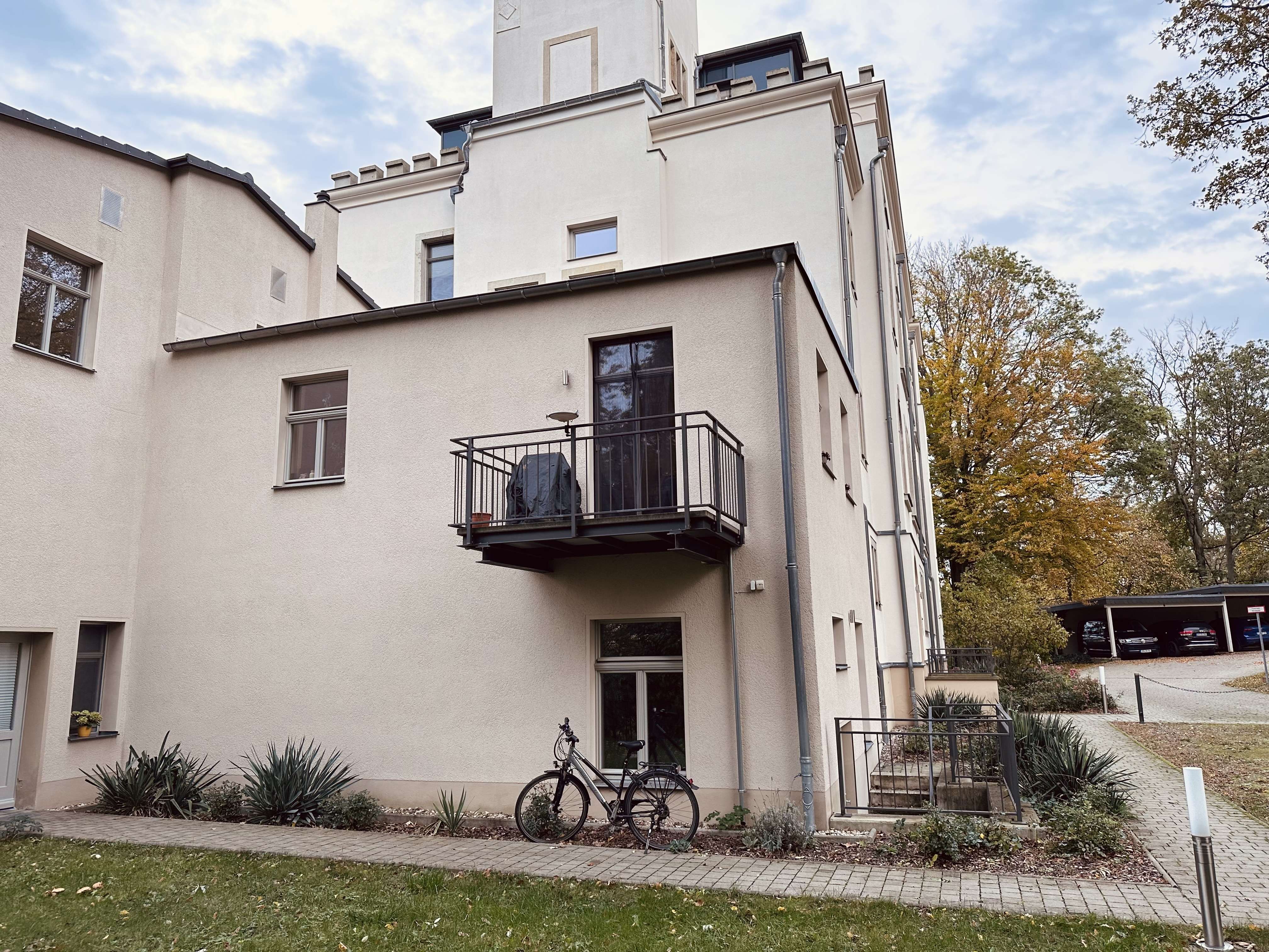 Die zu verkaufende Eigentumswohnung ist Teil einer im neogotischen Stil erbauten Schlossvilla im Dresdener Stadtteil Cossebaude. Das denkmalgeschützte Ensemble wurde ca. 1890 erbaut und im Jahr 2011 unter Beachtung denkmalschutzrechtlicher Belange umfassend und liebevoll saniert. Es entstanden insgesamt 9 individuelle Eigentumswohnungen, darunter das Verkaufsobjekt. Das weitläufige Grundstück ist park ähnlich angelegt und verfügt über einen wunderschönen, alten Baumbestand.